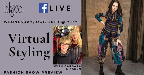 Barbara & Karen give a sneak peak to the Fabulous Fall Fashion Show 2022 at Sparrow in Virtual Styling #137. We are so excited to bring you 3 segments of fabulous fashion: casual daytime, elegant anytime, and holiday dressing.